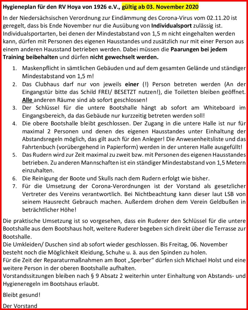 #Hygieneplan ab 03. November 2020