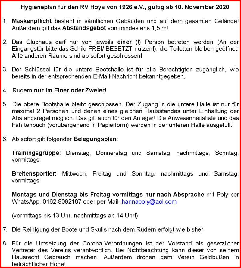 #Hygieneplan ab 10. November 2020